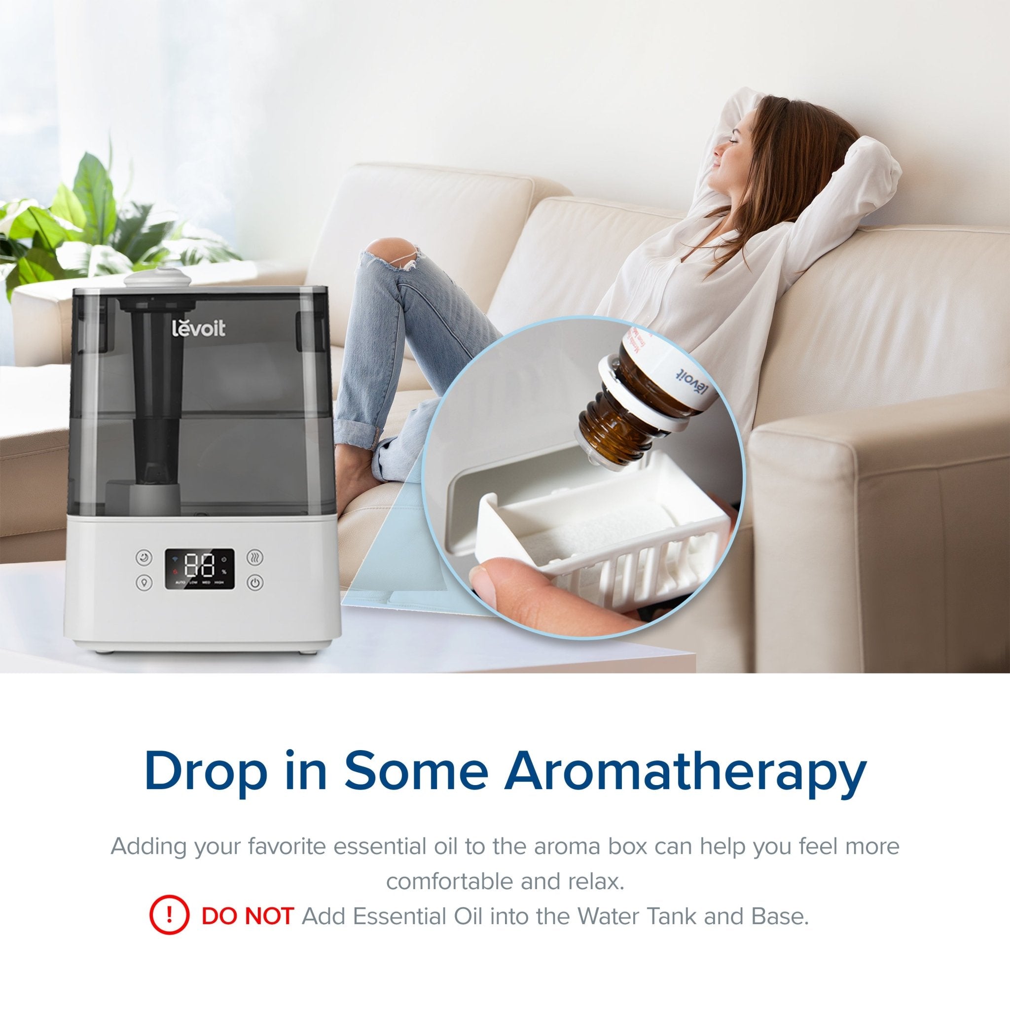 Enjoy relaxing aromatherapy by adding your favorite essential oils to the aroma box.? Humidifier aroma pads emits stronger fragrance. lasts longer after each application. and protects the fragrance box.? These pads are compatible with Levoit’s Classic 300S. OasisMist. LV600S. and LV600HH.